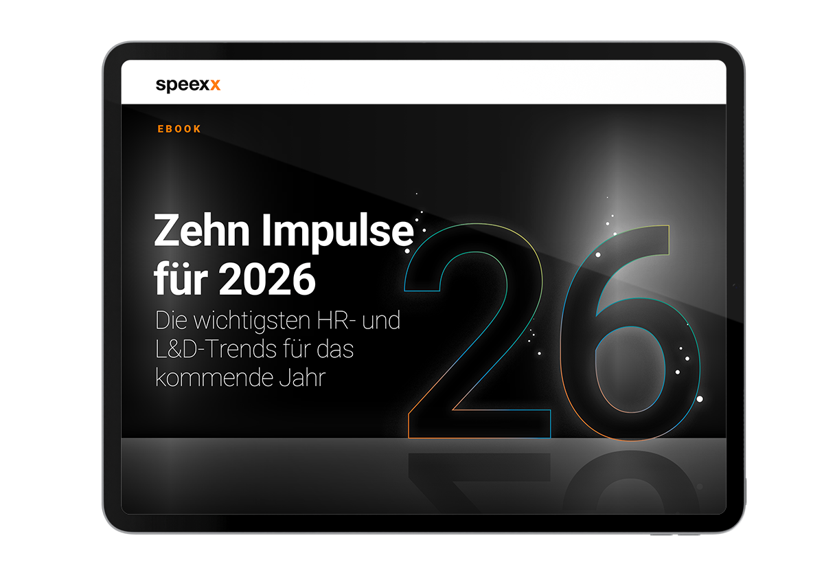 Erhalten Sie einen kompakten Überblick über die wichtigsten HR- und L&D-Trends für 2026 und erfahren Sie, welche Ideen das kommende Jahr prägen werden. Unser E-Book “Zehn Impulse für 2026” richtet sich an vielbeschäftigte Fach- und Führungskräfte und fasst die zentralen Entwicklungen zusammen, die 2026 den Personalentwicklungsbereich maßgeblich beeinflussen werden.