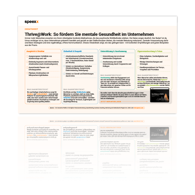 So fördern Sie die mentale Gesundheit ihrer Mitarbeitenden – dieses Cheatsheet zeigt, welche konkreten Maßnahmen große Auswirkungen auf das psychische Wohlbefinden haben.