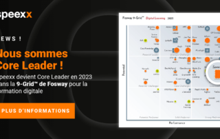 Munich, Allemagne, 30 mars 2023. Speexx, leader du développement professionnel digital des collaborateurs par le coaching et la formation en langue, a annoncé aujourd’hui qu’il est passé de Strong Performer à Core Leader dans le 9-Grid™ for Digital Learning du groupe Fosway, pour sa plateforme digitale primée. Cela représente une montée en puissance constante dans la 9-grid™ pour Speexx, ayant progressé d’année en année ; de Solid Performer en 2021, High Performer en 2022, et désormais Core Leader en 2023.